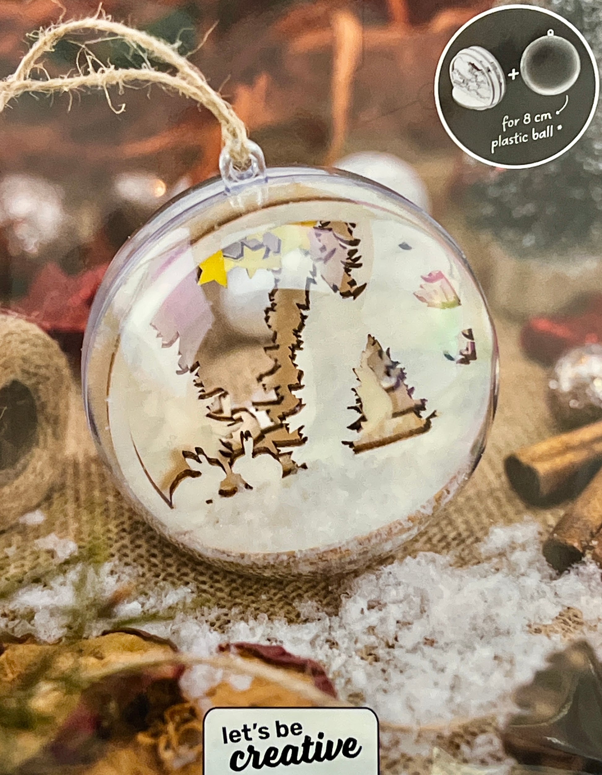 3D Figursett i tre til julekuler - 10 ulike motiver å velge i, passer til julekule Ø: 80mm