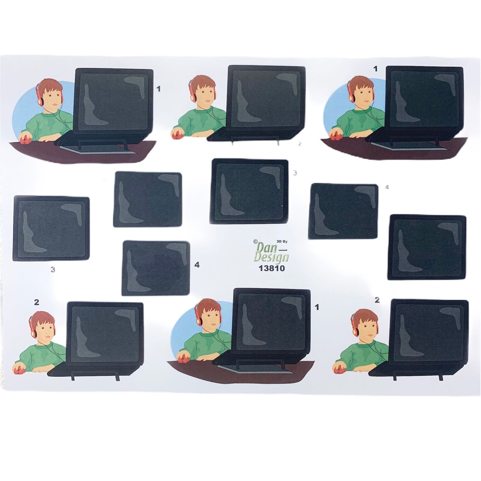 3 stk motiver pr ark. du kan enkelt klippe ut motivene som er nummerert i rekkefølge og bygge opp med 3d-limputer.