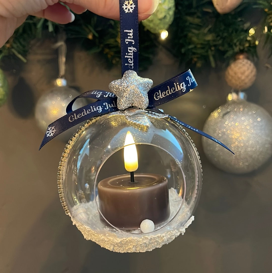 Flotte klare acrylkuler, delbare, som er fine som de er (f.eks med led telys inni, og også nydelige å dekorere etter ønske. Se eksempelbilder.