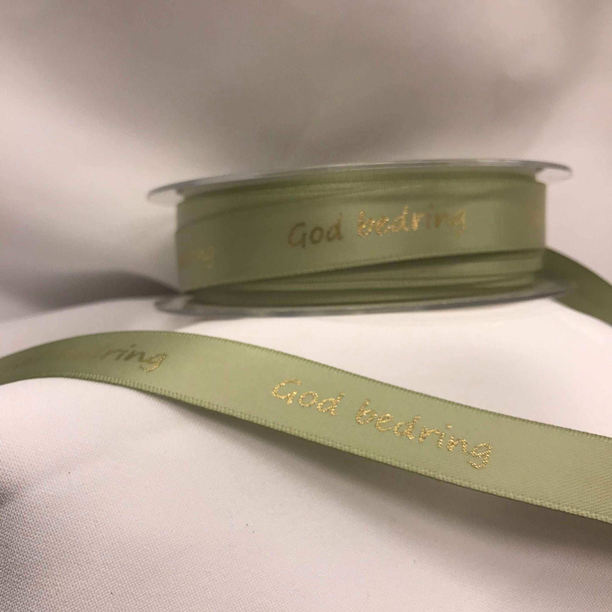 Silke-bånd i vakker grønnfarge med gullskrift: God bedring".