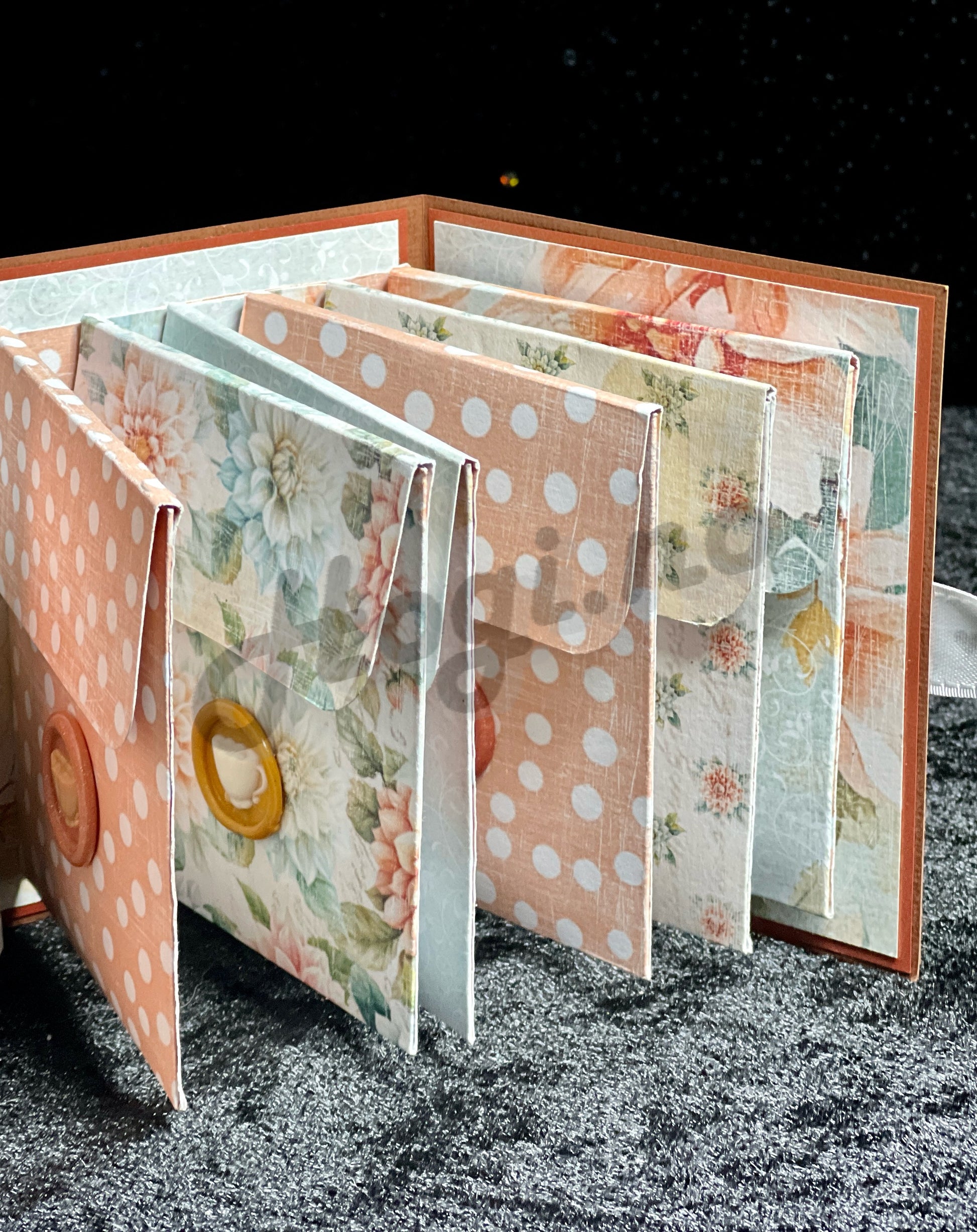 Med dette kit’et kan du lage en skjønn te-bok / gavebok med lommer som du får plass til f.eks. standar tepose, After eight, gavelapper m.m