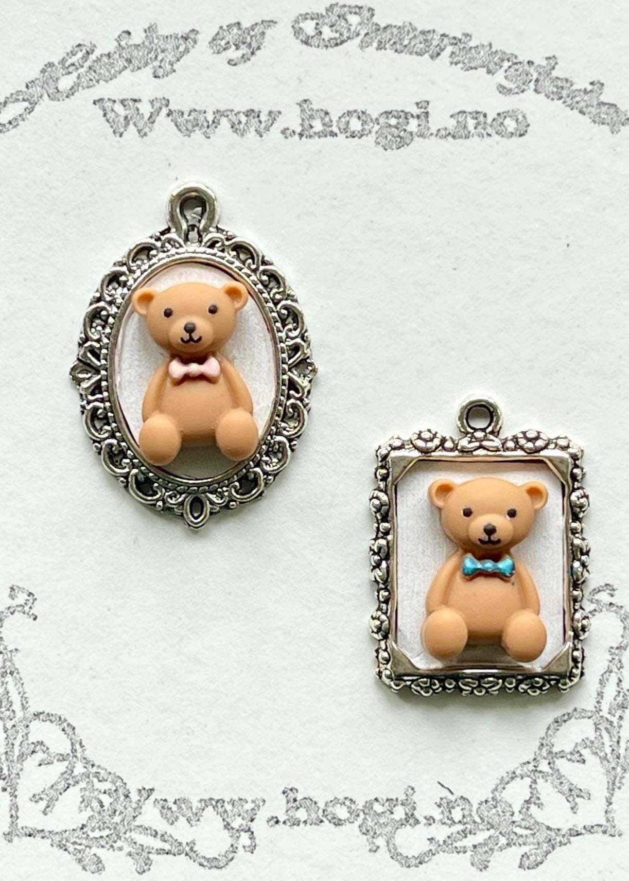 tips! Fest en skjønn liten bamse m/rosa sløyfe i rammene😍