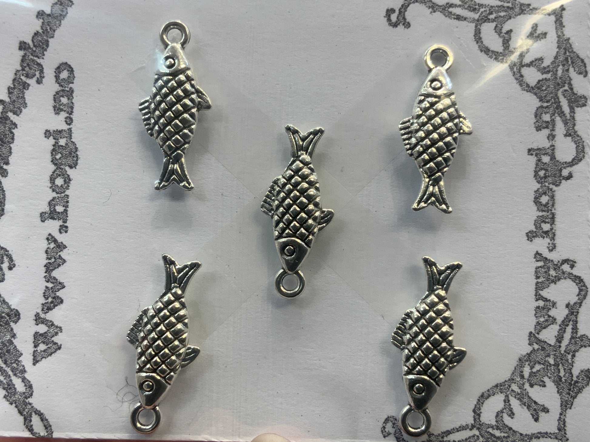 5 stk. Fisk i sølvfarget metall