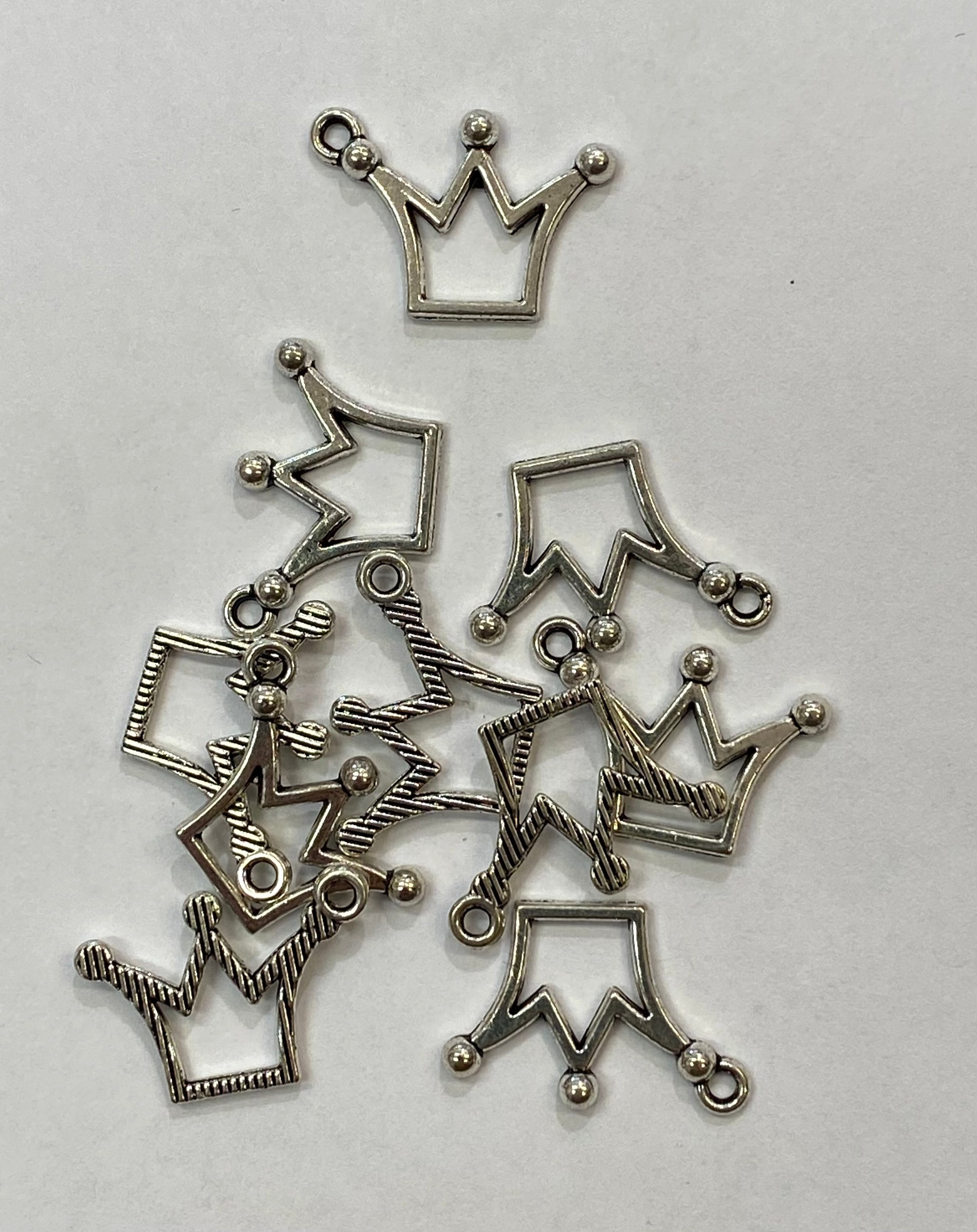 Charms - Sølvfarget krone m/oppheng 10 stk pr pk.