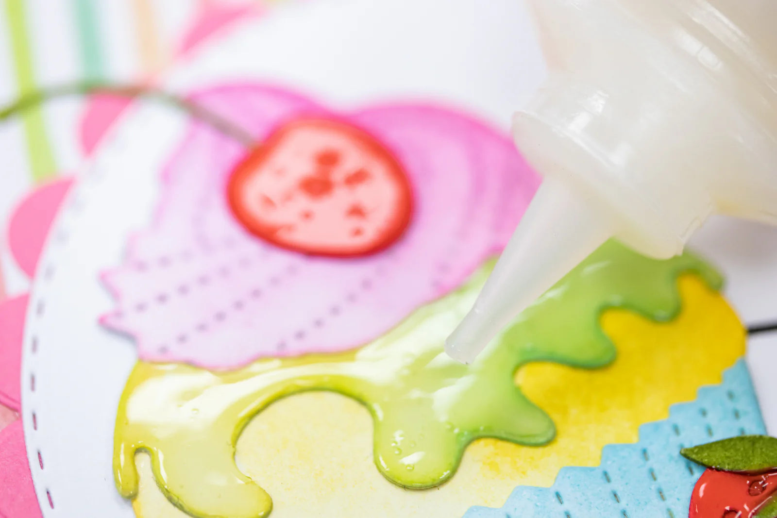 Det giftfrie og syrefrie glansbelegget fungerer til og med som lim, perfekt for å feste glitter og små utsmykninger til designene dine.