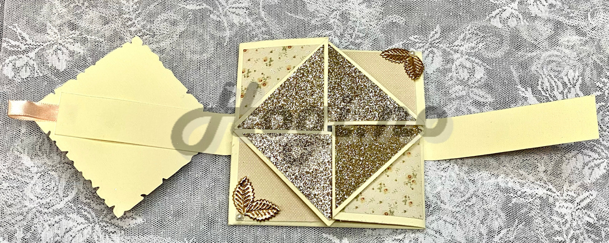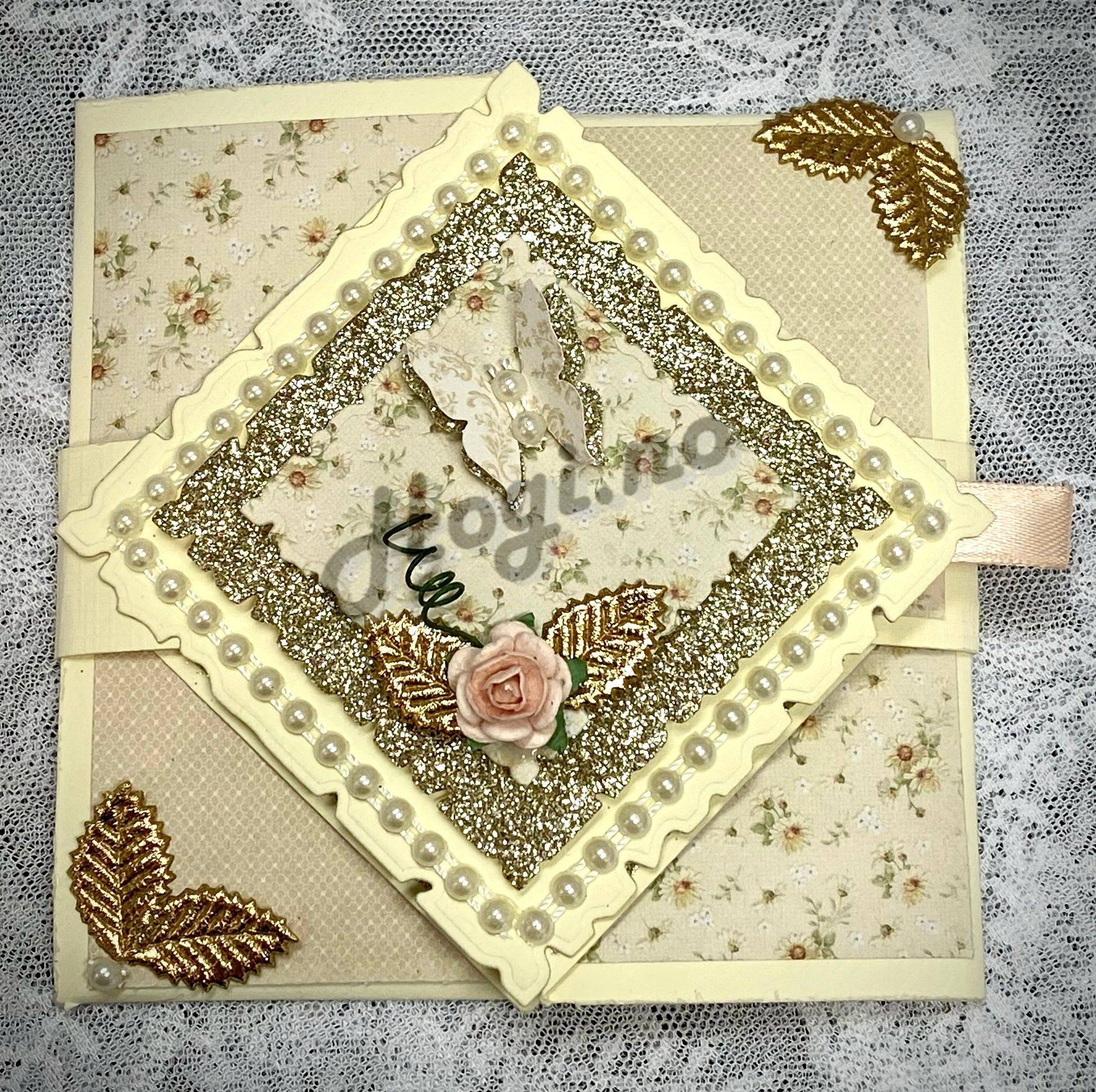 Hogi.no’s mal/ fremgangsmåte for å lage brettekortet, (måleenhet: inch) mønsterark, glitterkartong, perlebånd, sommerfugler.