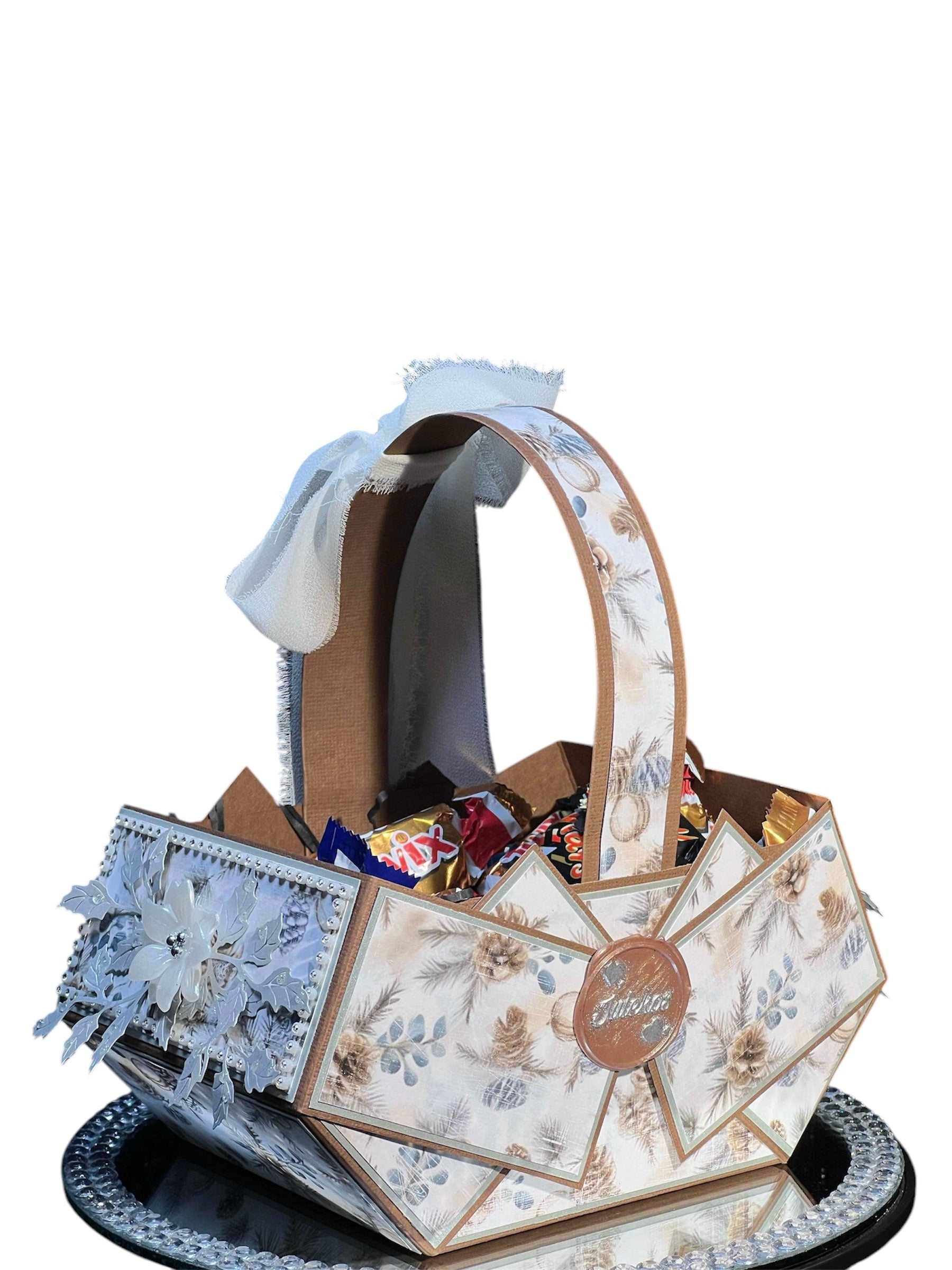Pakken inneholder mal (fremgangsmåte) og materiell* til å lage en skjønn og praktisk kurv i kartong og papir. Alle våre maler er i inch