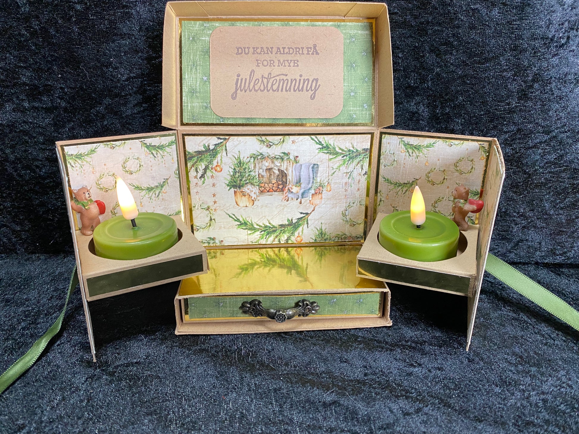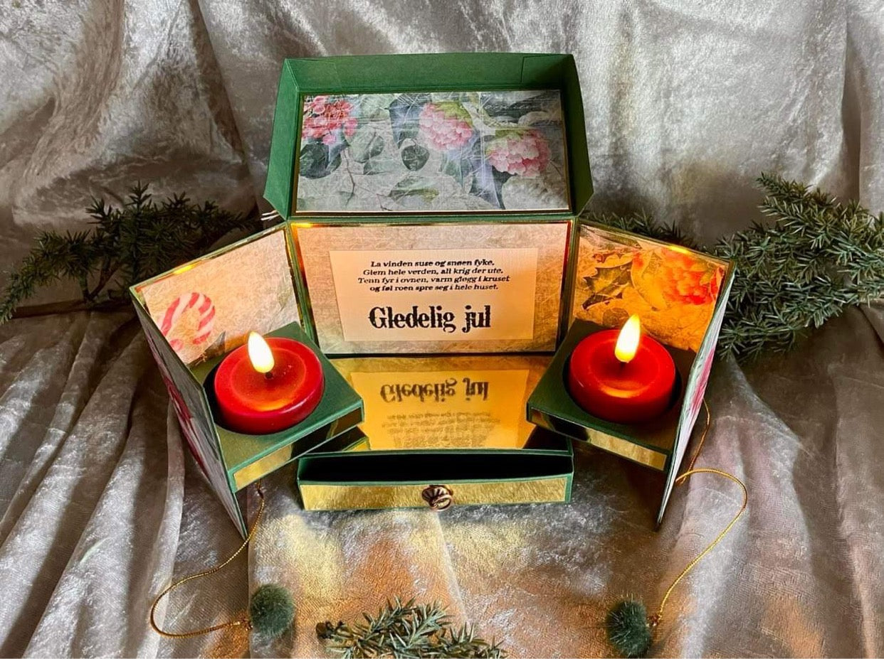 Pakken inneholder mal (fremgangsmåte) og materiell* til å lage en «gaveeske» telysholder med skuff i papir. Måleenhet: inch