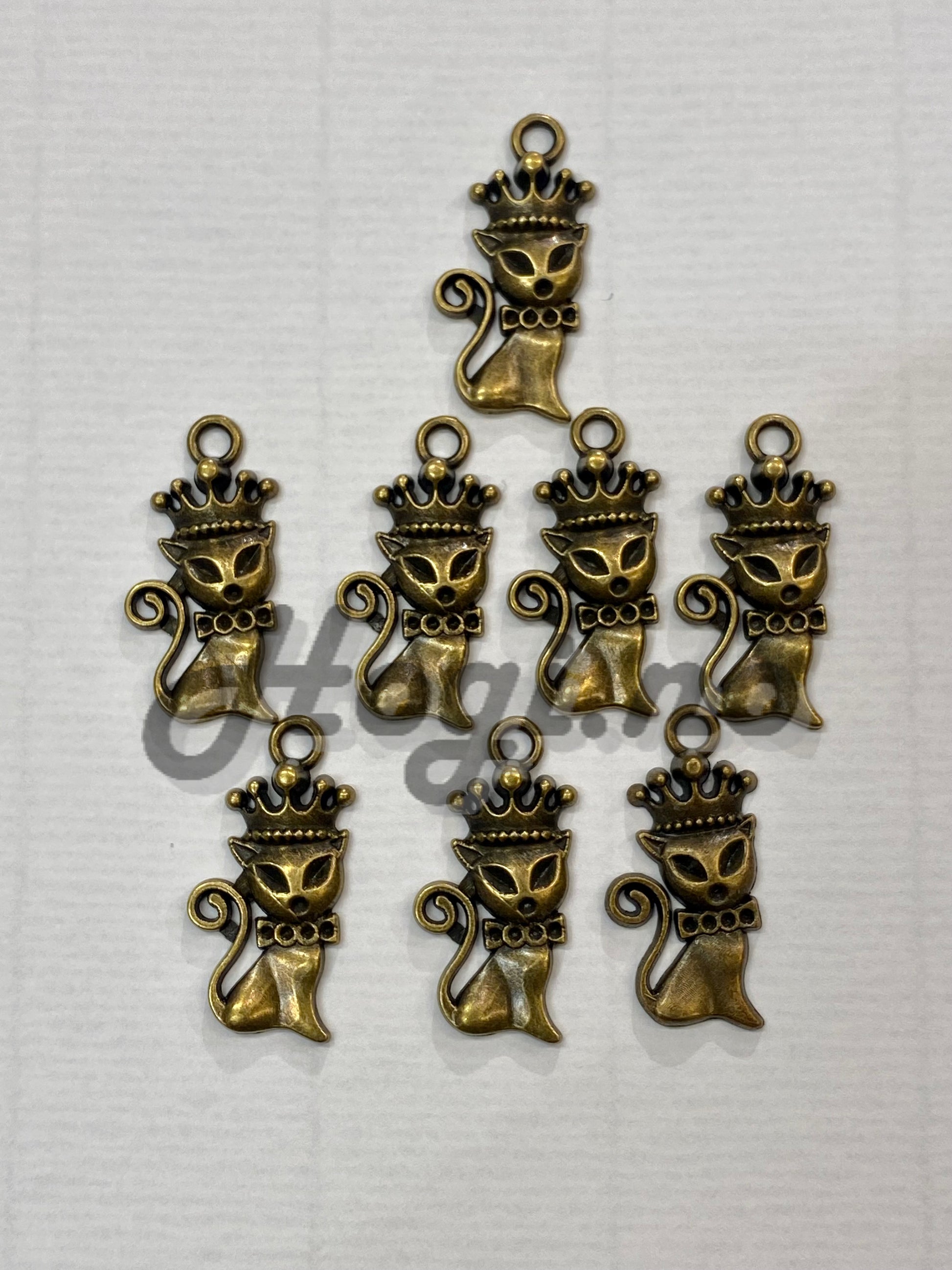Katt med krone - Antikk gull farget charms