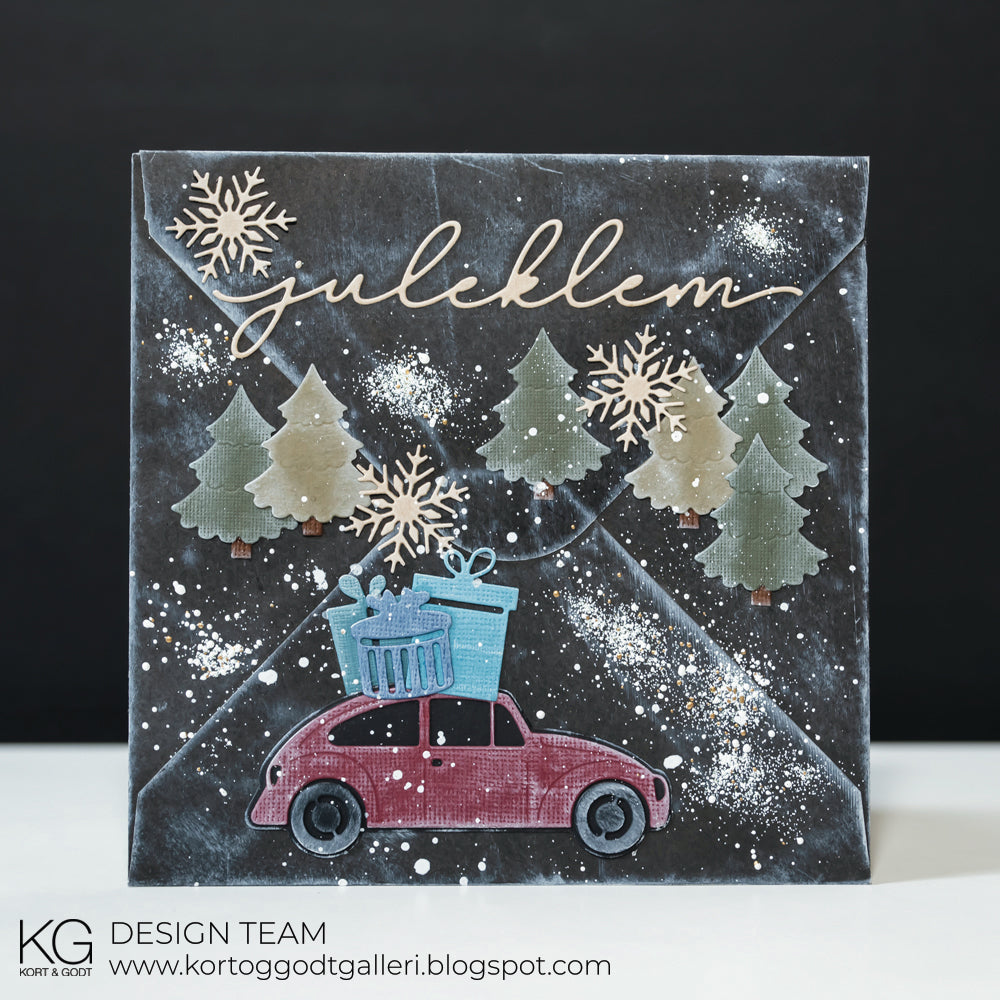 lag en flott julebil ved bruk av den flotte accesories dies fra K&G: « Die323 » og tekstdie: "Die300"