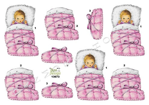 3D klippark - jente / baby sovetid, rosa