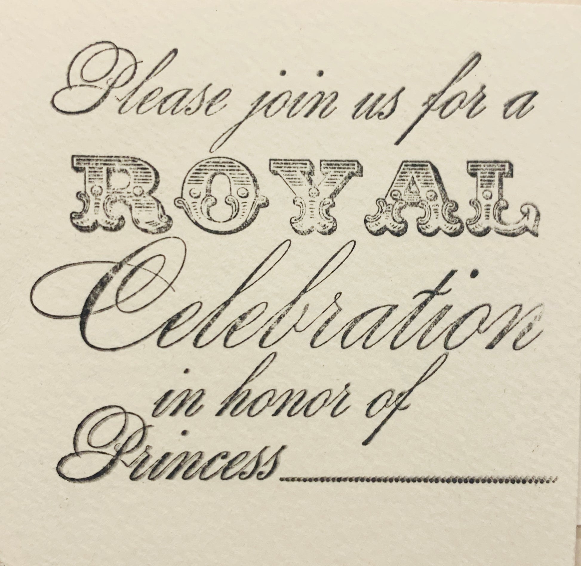 Modell: test stempel: Please join us for a royal celebration in honor of princess......