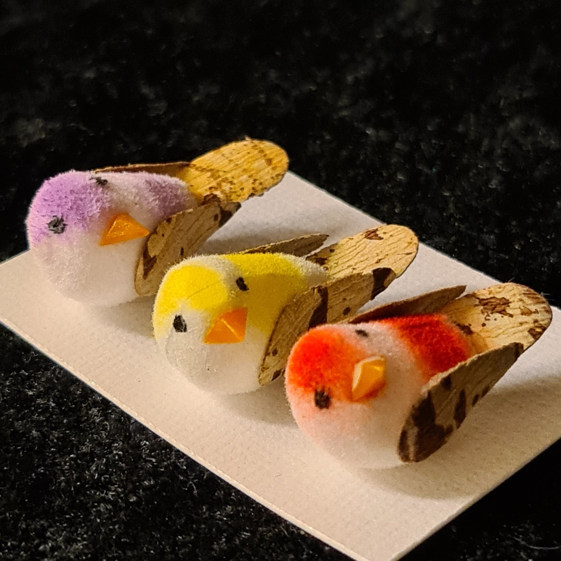 Miniatyr fugl ass. farger , 3x1cm, 3stk
