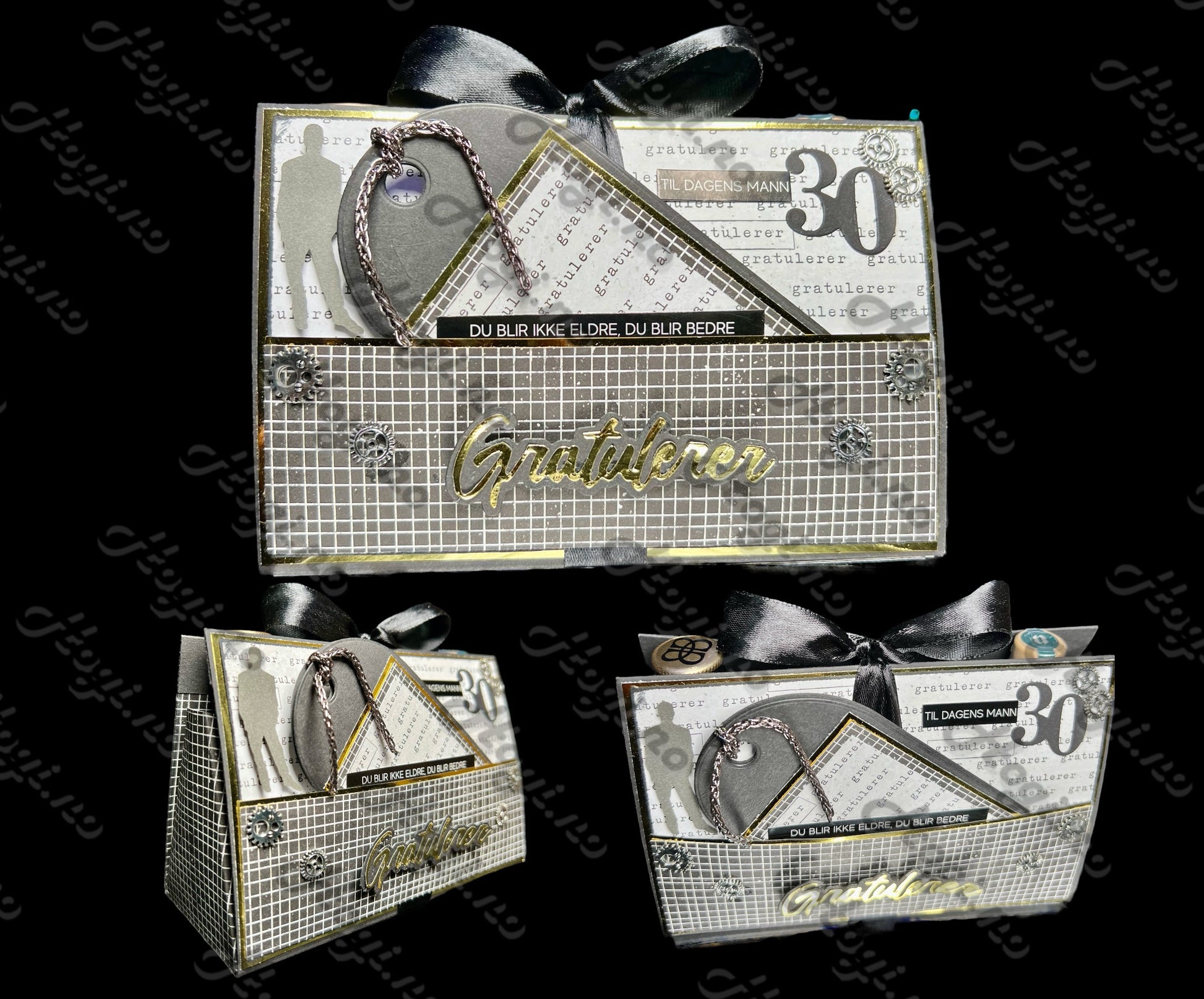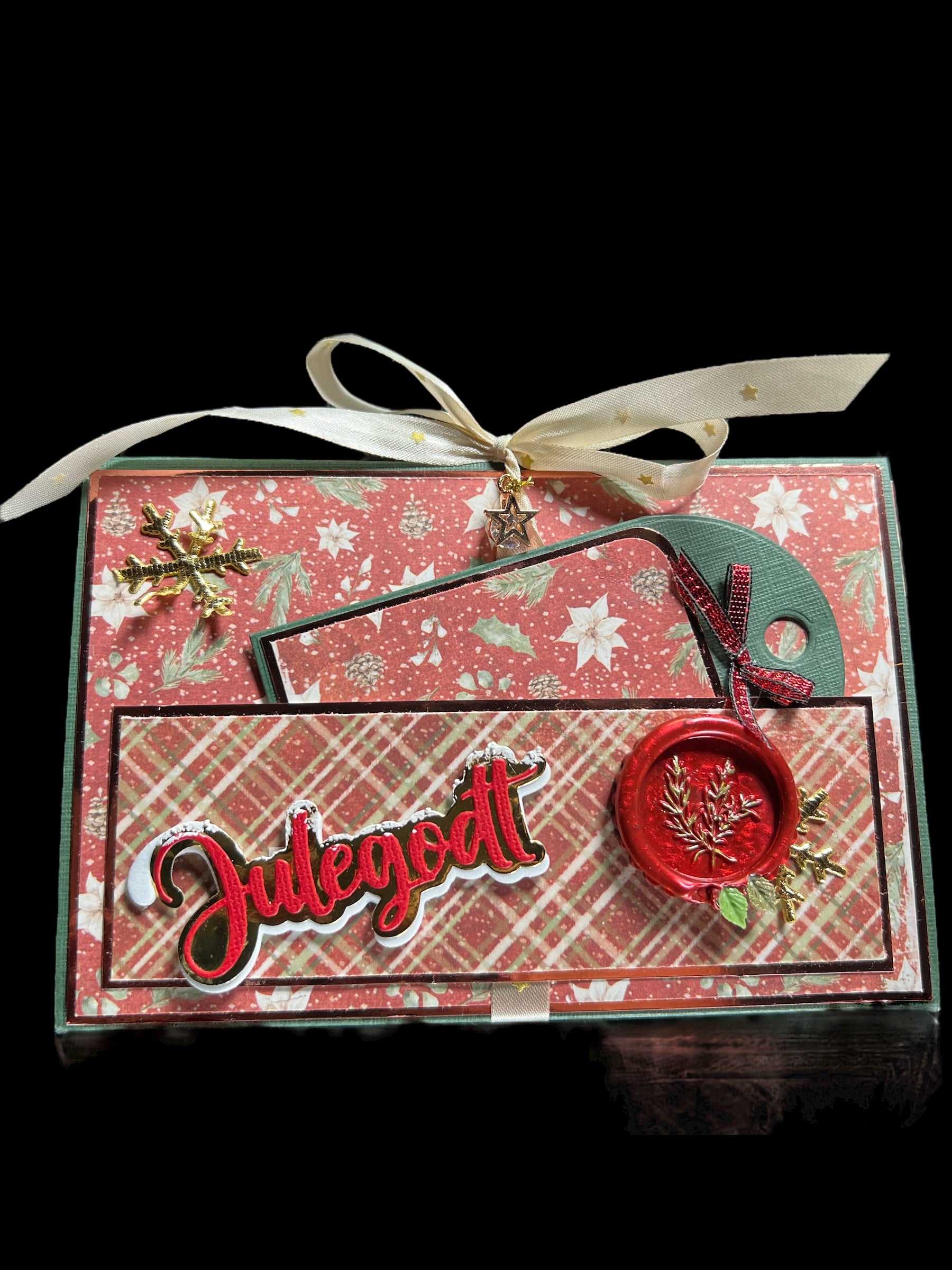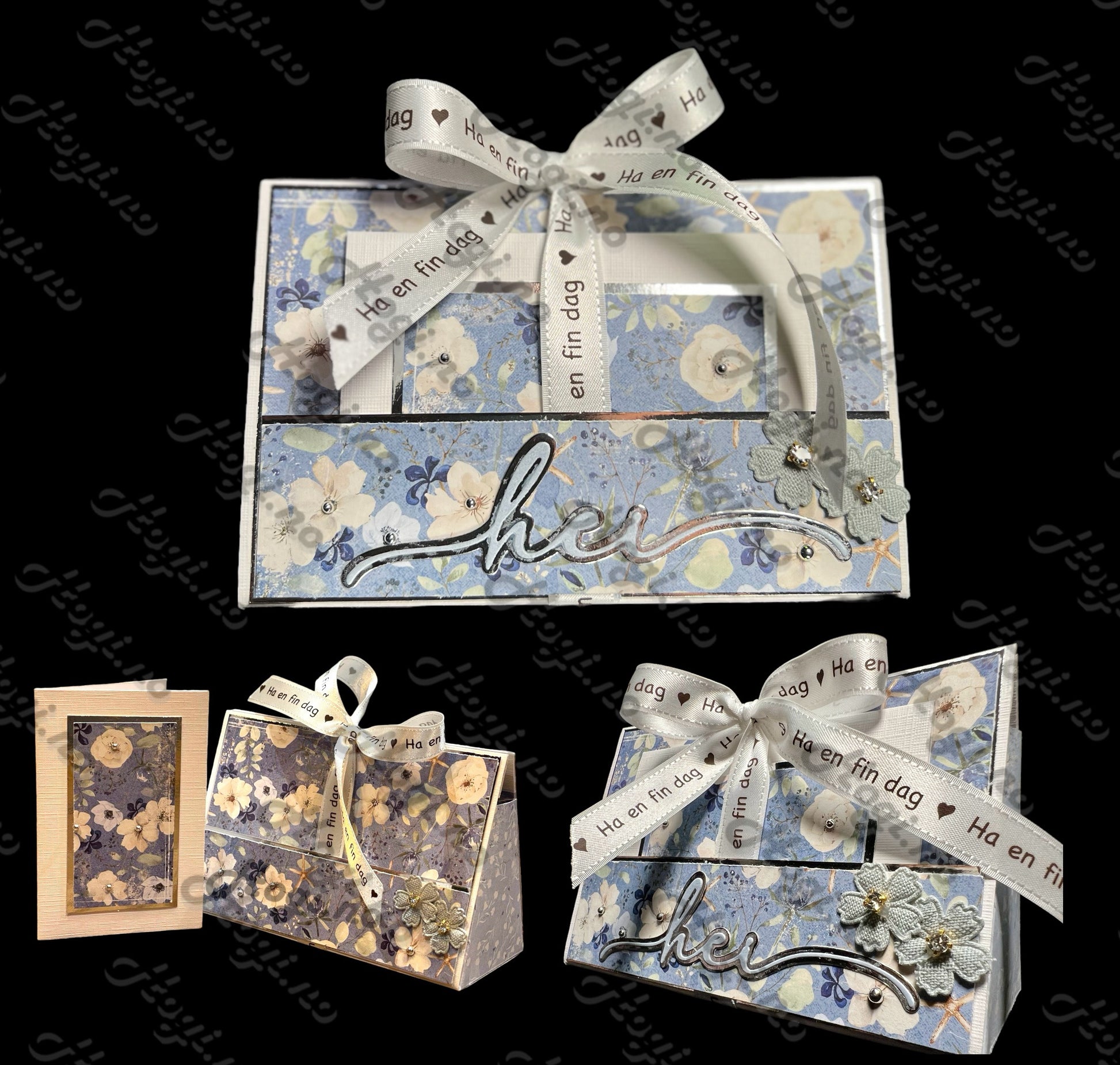 Med dette kit’et kan du lage en gøyal og praktisk gaveboks med egen lomme med plass til kort.