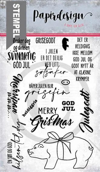 Stempler fra Papirdesign med norske tekster og motiv til kortlaging og papirhobby. Stemplene kan legges direkte på en akrylkloss eller i stempelbrett for bruk sammen med en stempelpute.