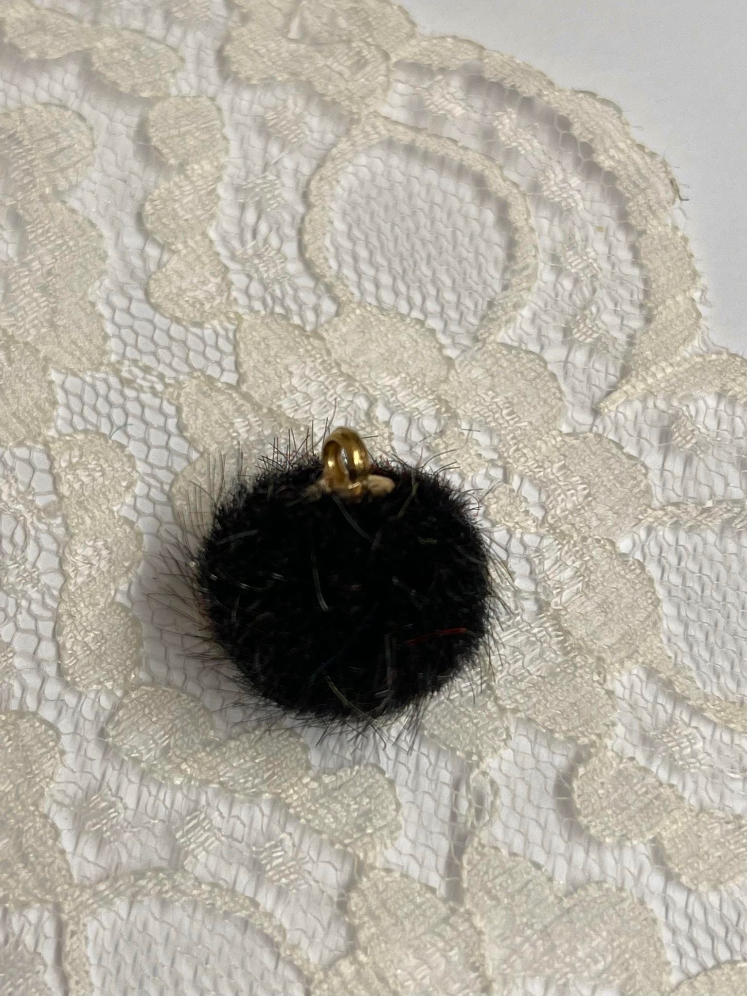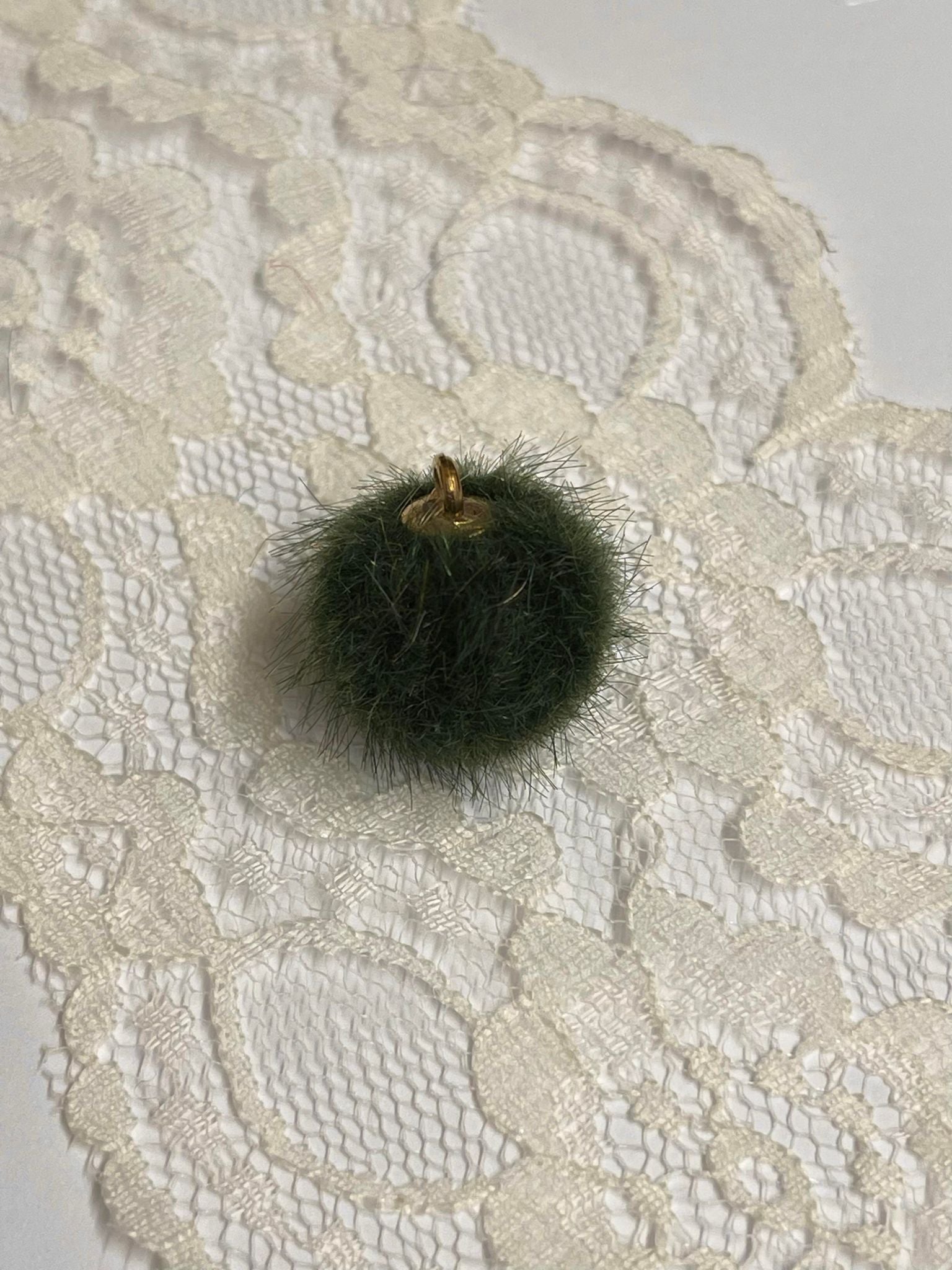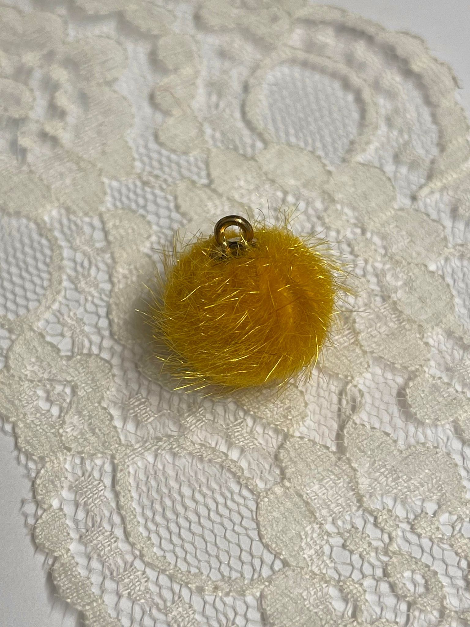 Nydelige små (Ø ca 1,5 cm) pompom i mange farger. "Gull"-feste til oppheng/fastsying.
