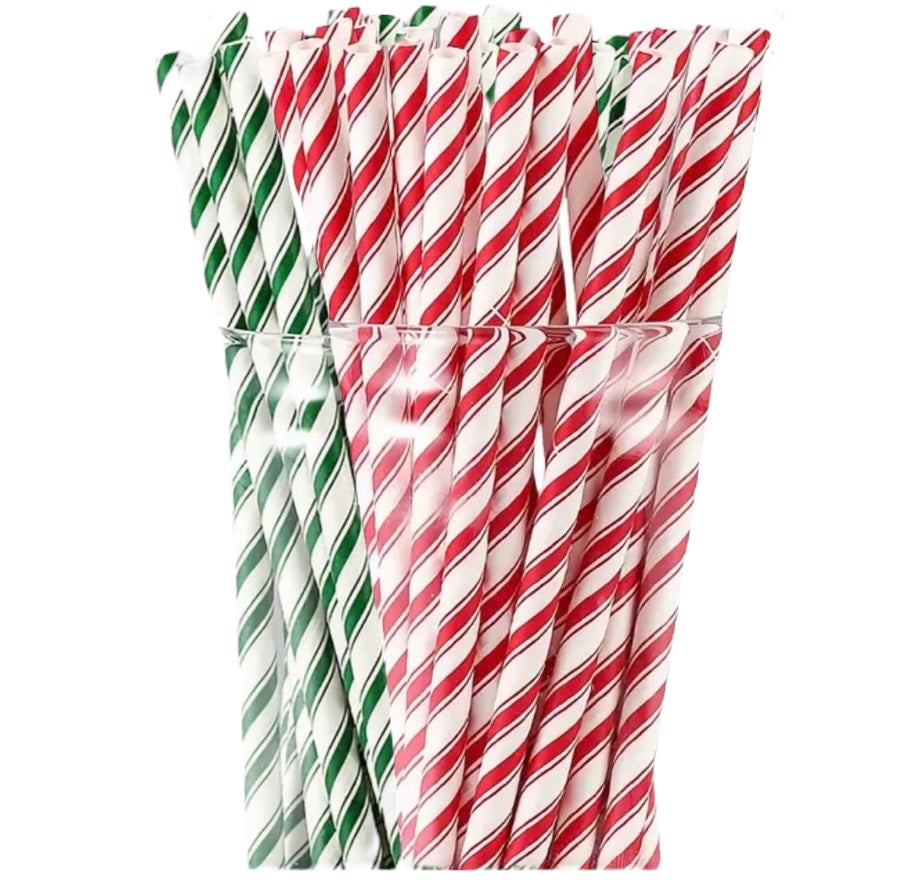 SALG! Sugerør med striper grønn og rød , L:20 . 24 stk per pose
