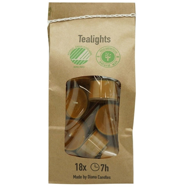 Telys - senneps gul/ oker - 18stk - 7t brenntid - gjennomsiktig plastkopp