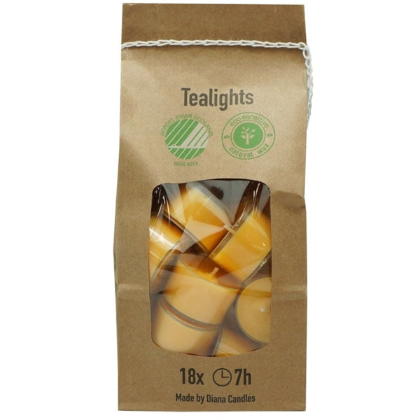 Telys - Gul - 18stk - 7t brenntid -gjennomsiktig plastkopp.