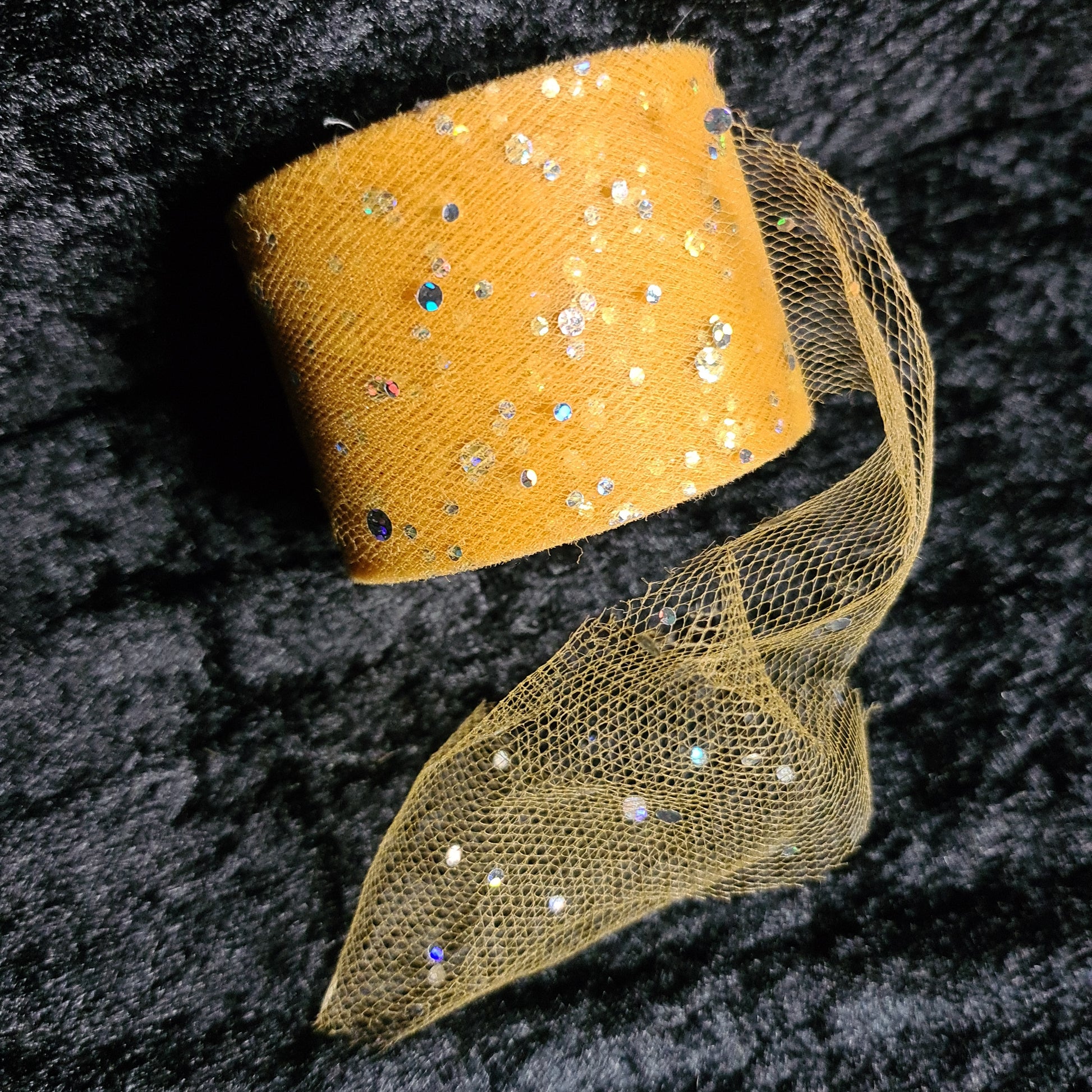 Tyll gul med sølvpaljetter