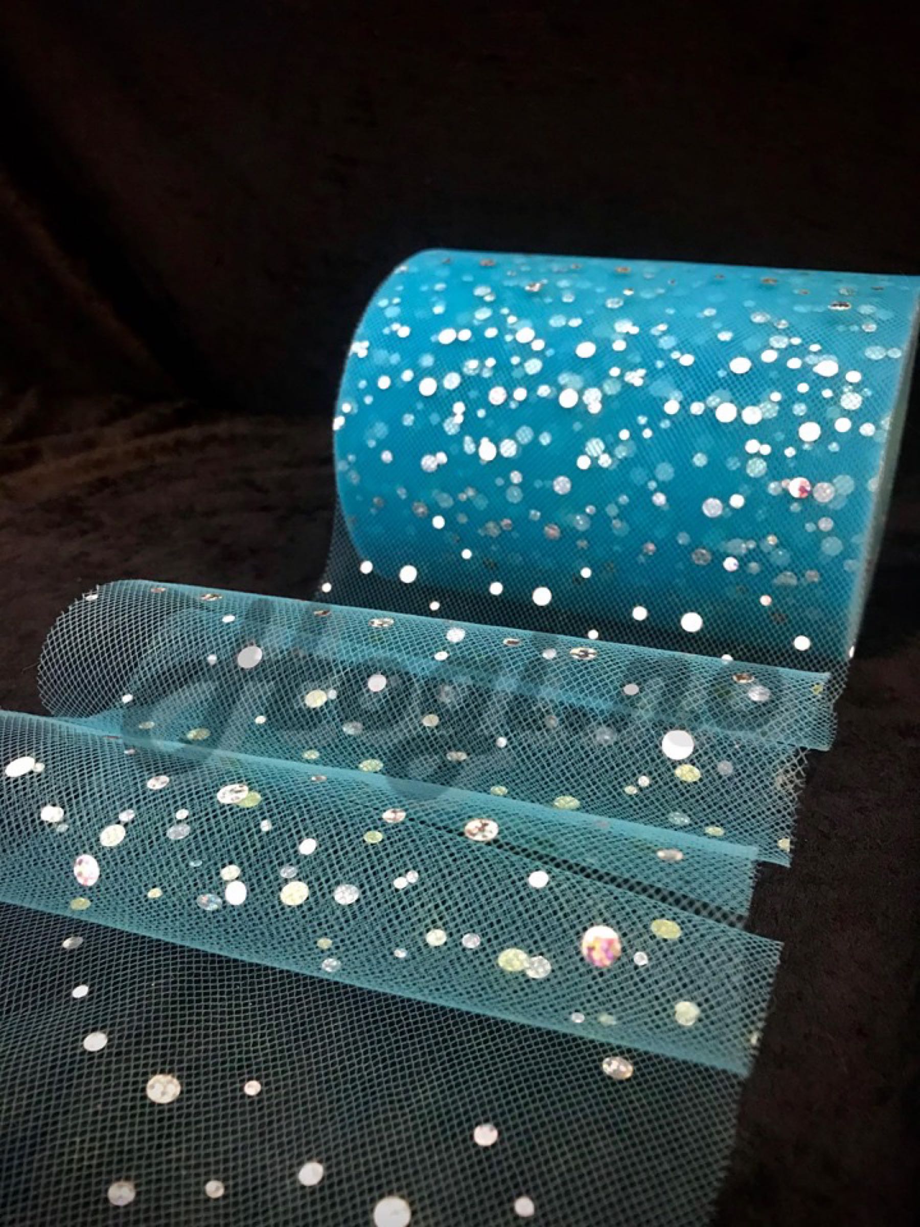 Nydelig turkis tyll som kan brukes til alt i fra bord løper, kort dekor, blomster pynting. mm