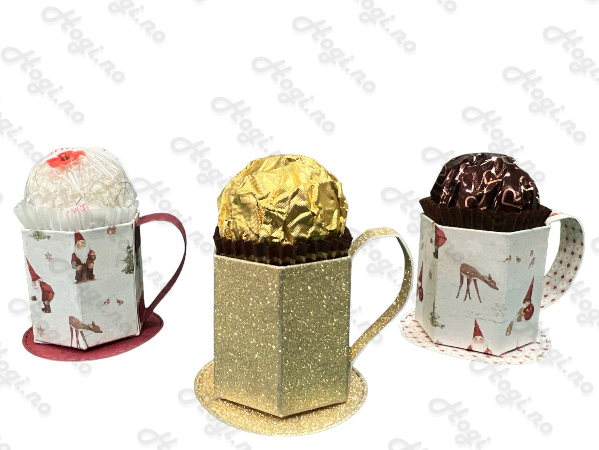 Skjønn liten kopp med plass til sjokolade oppi. Koppen er fin å bruke som feks bordkort, borddekor, eller en liten oppmerksomhet til noen du bryr deg om.